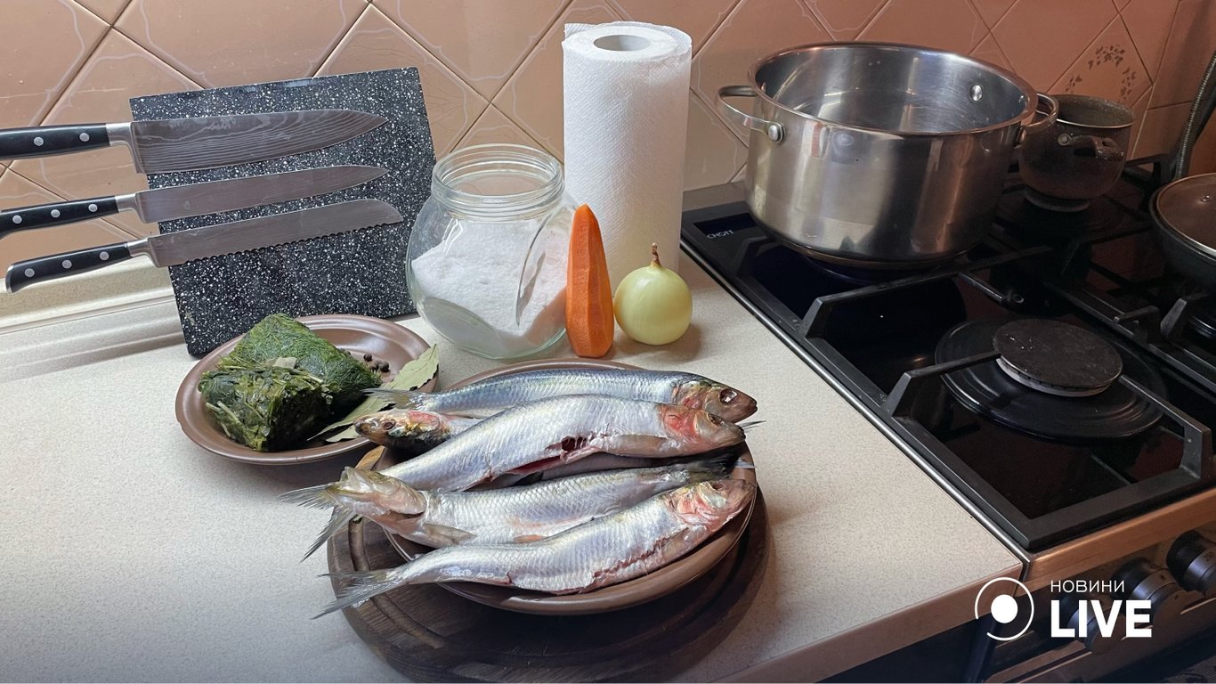 "Рибу почистити, не мити. Зробити тузлук (вода із сіллю, картопля майже плаває, але не повністю). Додати спеції: лавровий лист, перець запашний, часник. У посудину риба укладається поряд валетом (голова хвіст). Потім покласти в холодильник на 4-5 діб. Найкраще використовувати звичайну кам'яну сіль", — поділився рецептом одесит В'ячеслав.