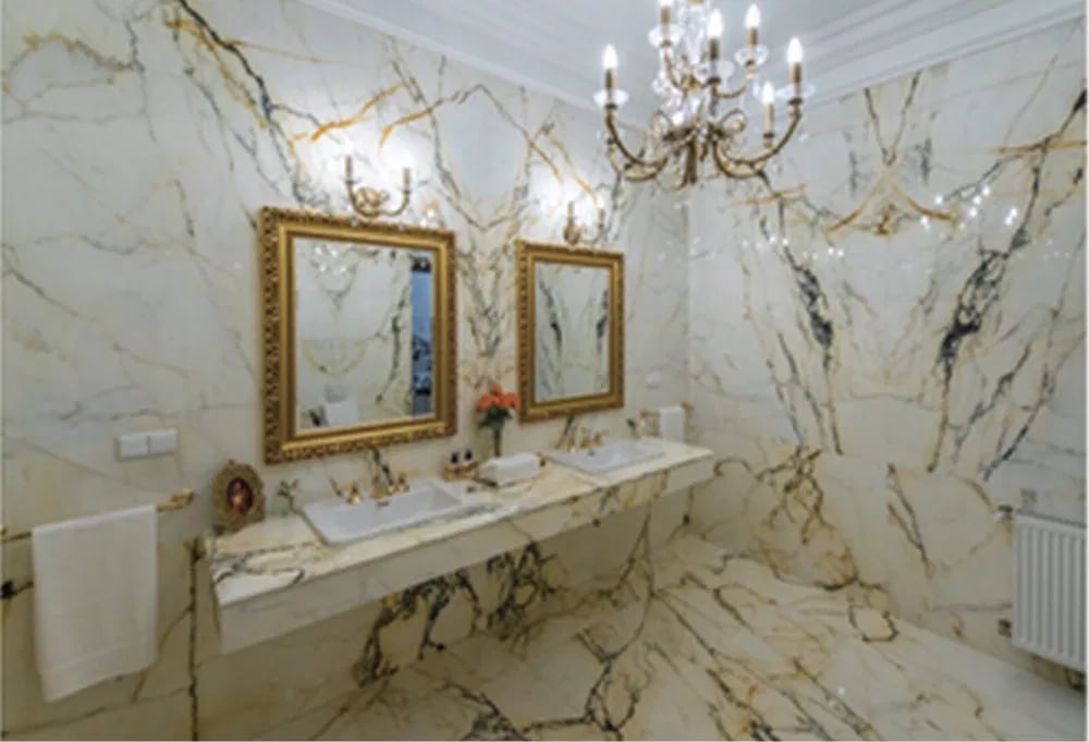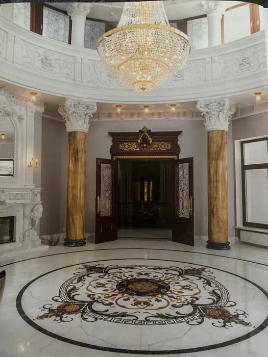 Матеріали оздоблення тут також королівські. Будинок оздоблений італійським мармуром чотирьох видів, художньою підлогою з індійського та італійського мармуру, оніксом у ванних кімнатах, вишуканими шпалерами у спальнях та натуральним текстилем. Крім того, будинок оснащено системами відеоспостереження та очищення повітря.