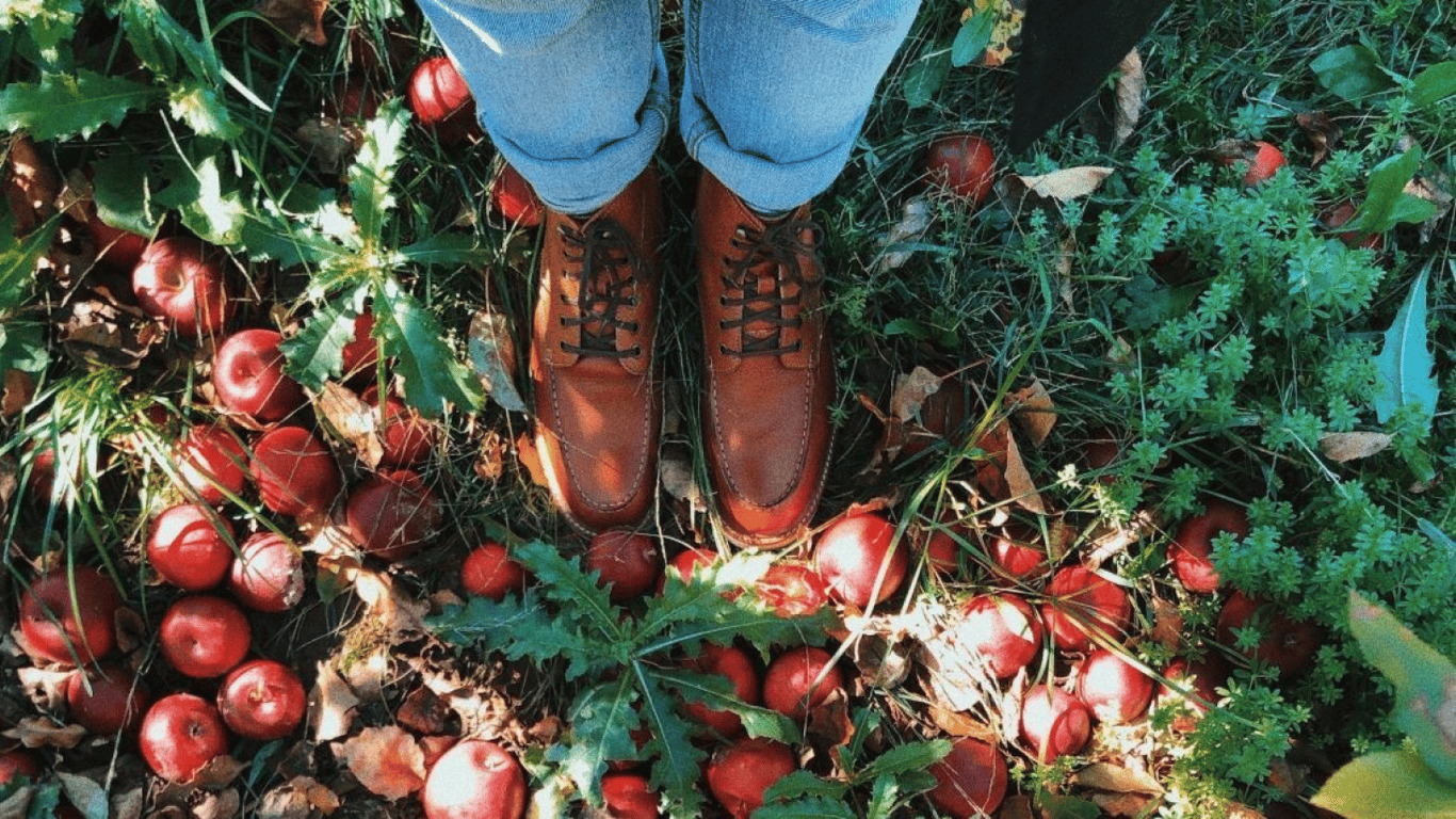 Опалі яблука під деревом у саду. Фото: Pinterest