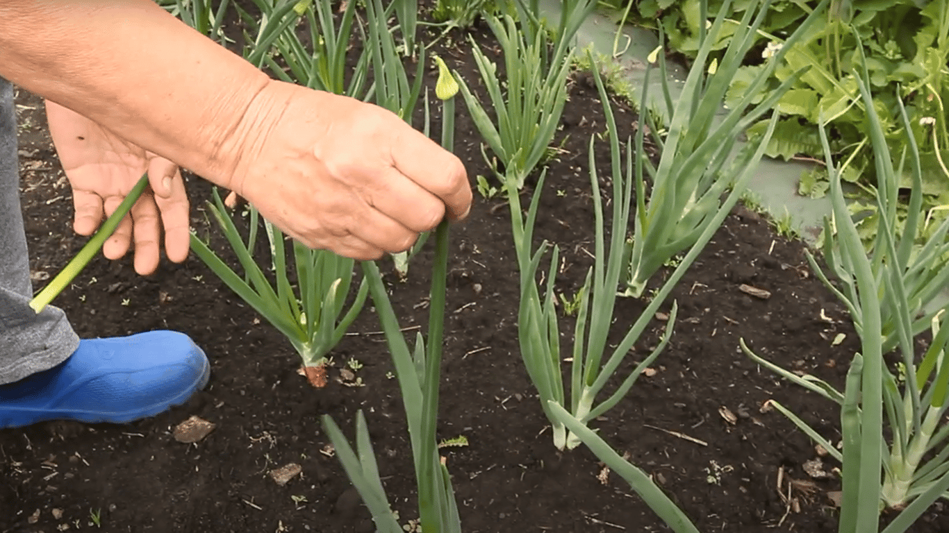 Стрілки на цибулі на городі. Фото: скриншот з YouTube