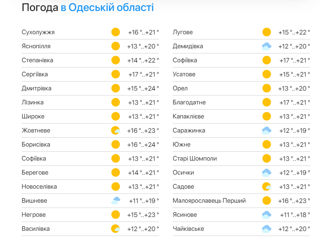 Прогноз погоди в Одеській області