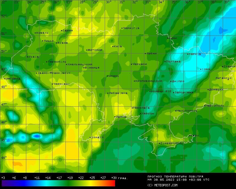 Карта погоди на 30 травня. Фото: Наталія Діденко
