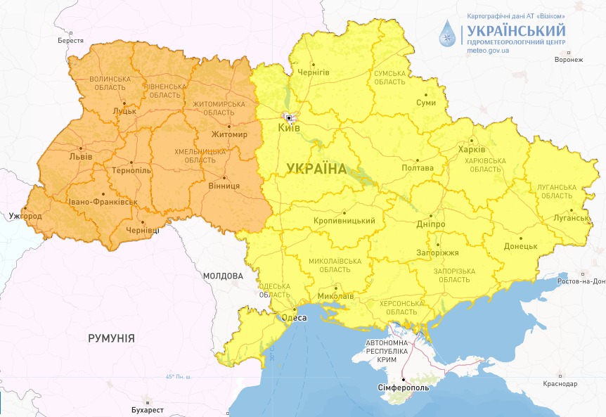 Попередження про небезпечні метеорологічні явища в Україні