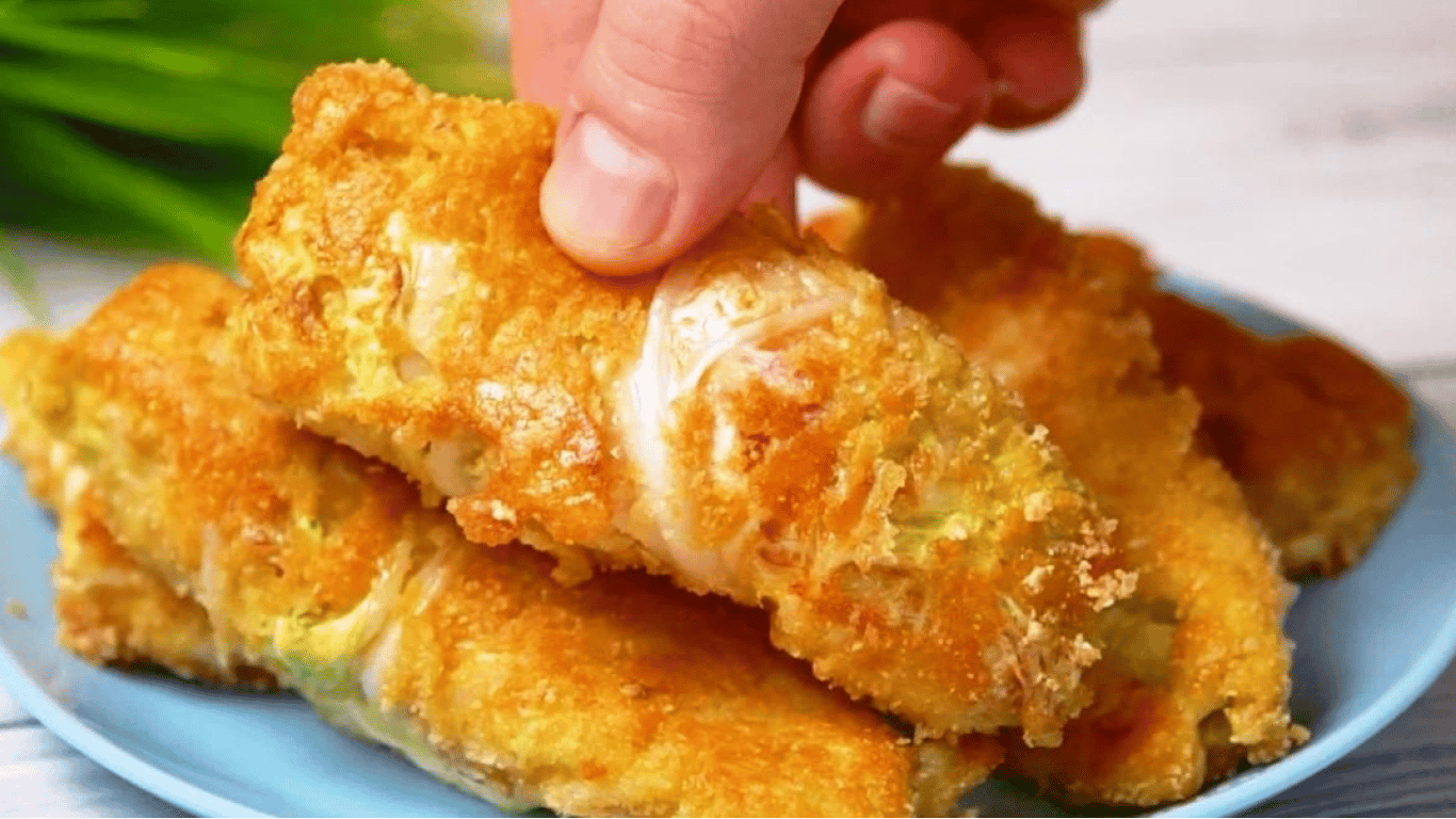 На розігрітій пательні з олією обсмажити рулетики з обох боків до золотавої скоринки.