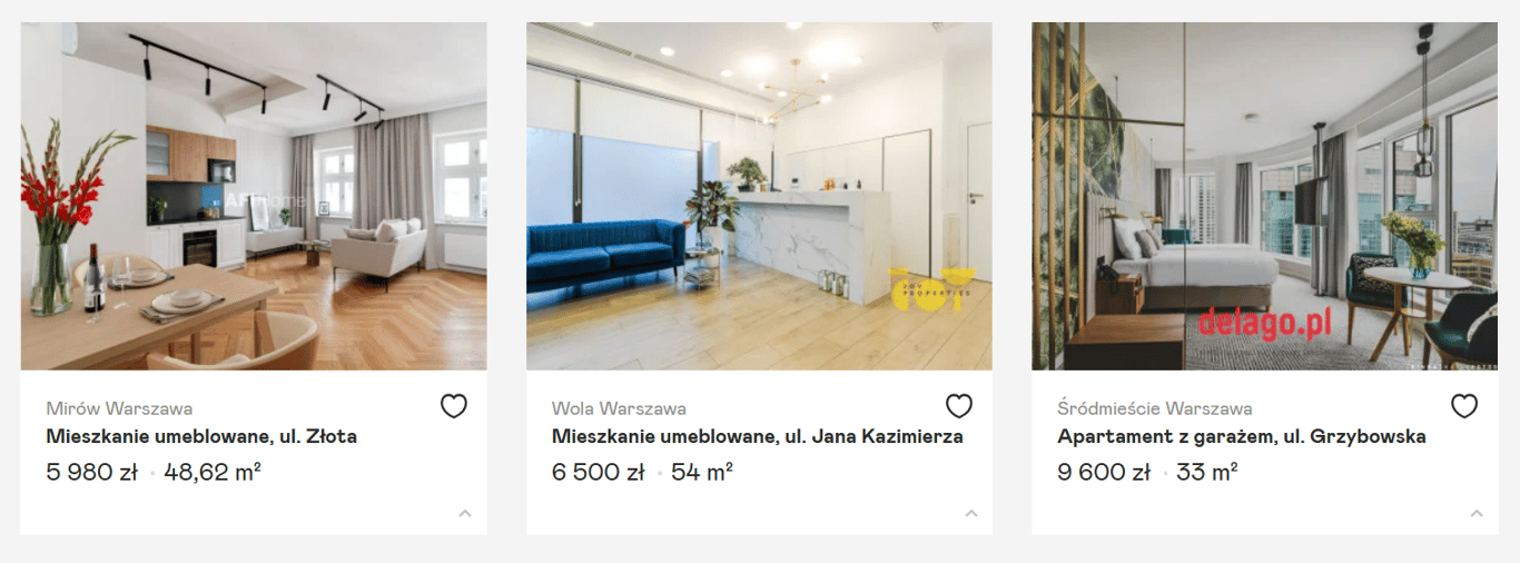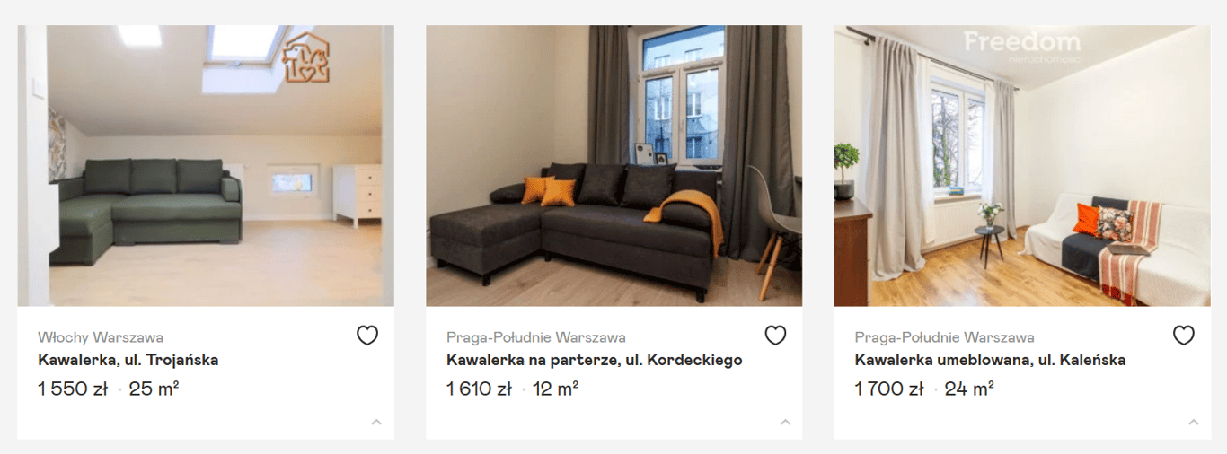 Стоимость аренды 1-комнатной квартиры в Варшаве. Фото: скриншот