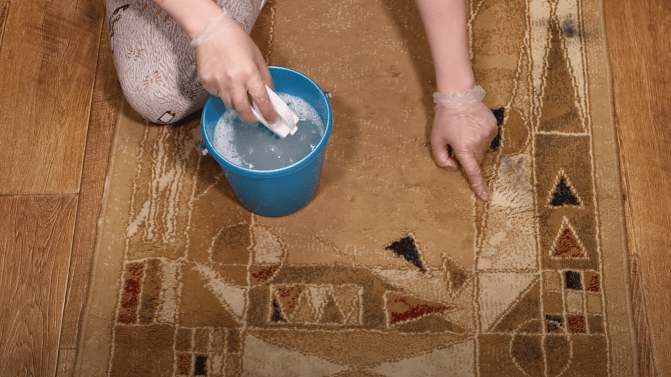 Очистка ковра хозяйственным мылом в домашних условиях. Фото: скриншот с YouTube