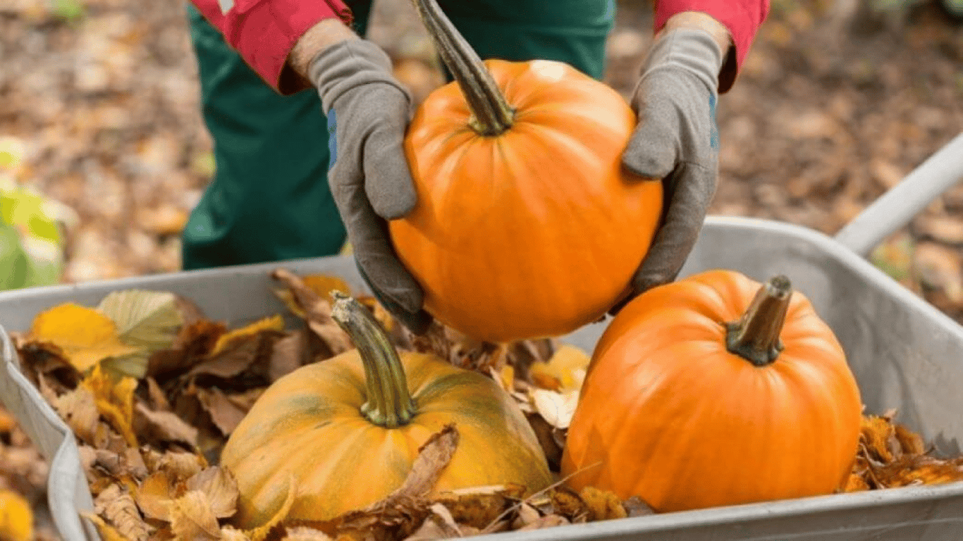 Человек, который собирает урожай тыкв. Фото: Decorexpro