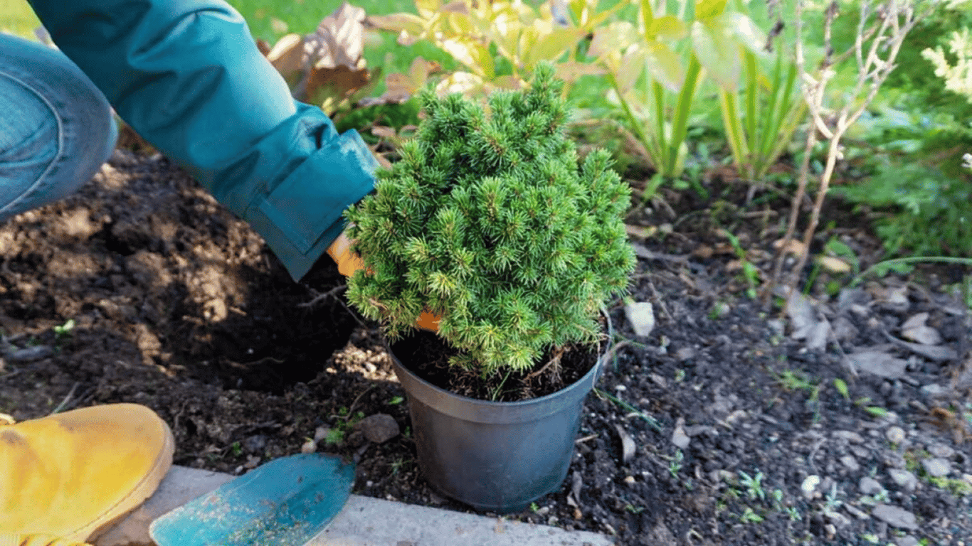 Человек, ухаживающий за елкой в горшке. Фото: House Digest