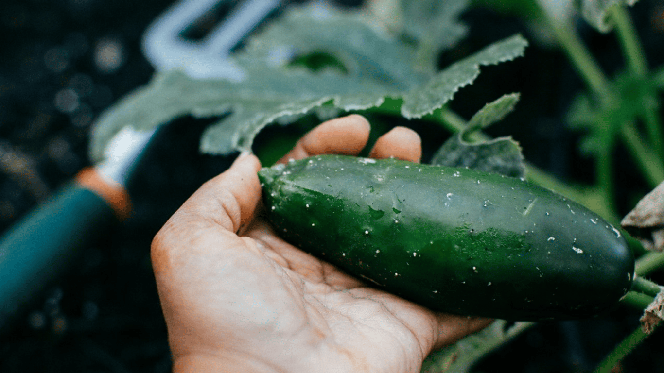 Человек с урожаем огурцов. Фото: Pexels