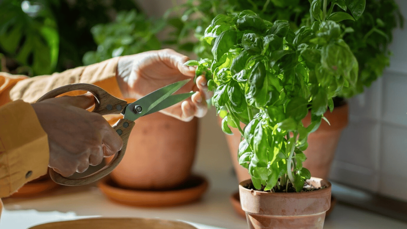 Процесс выращивания базилика в горшке. Фото: Pinterest