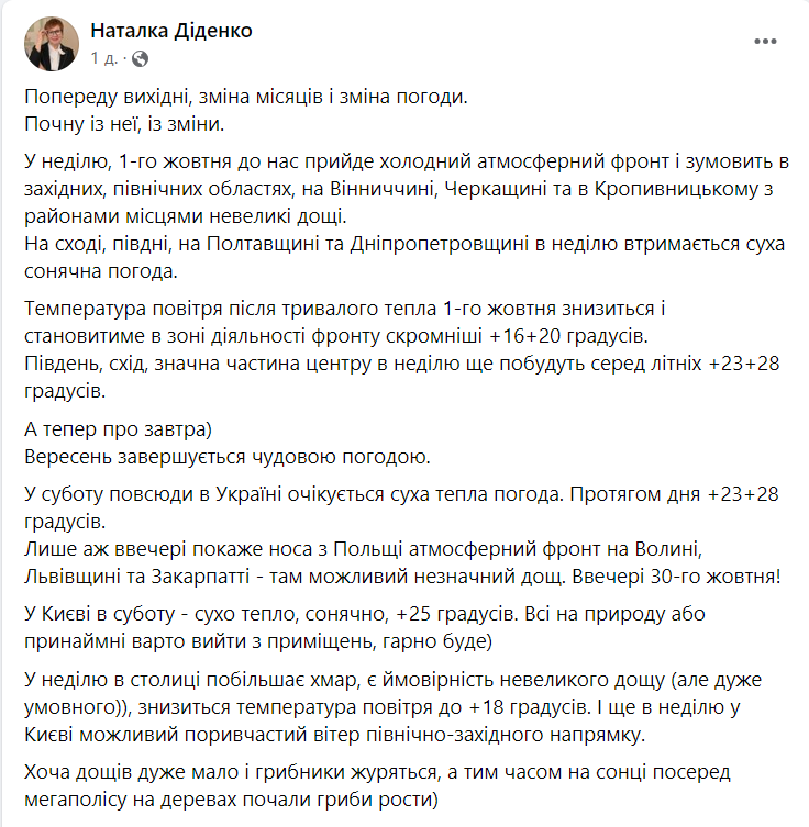 Прогноз погоды от Наталки Диденко