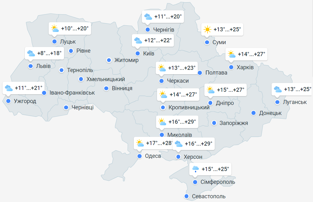 Температура воздуха в Киевской области: