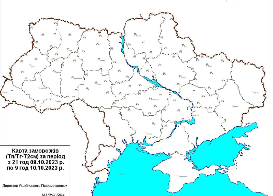 Карта заморозков в Украине 10 октября. Фото: Укргидрометцентр