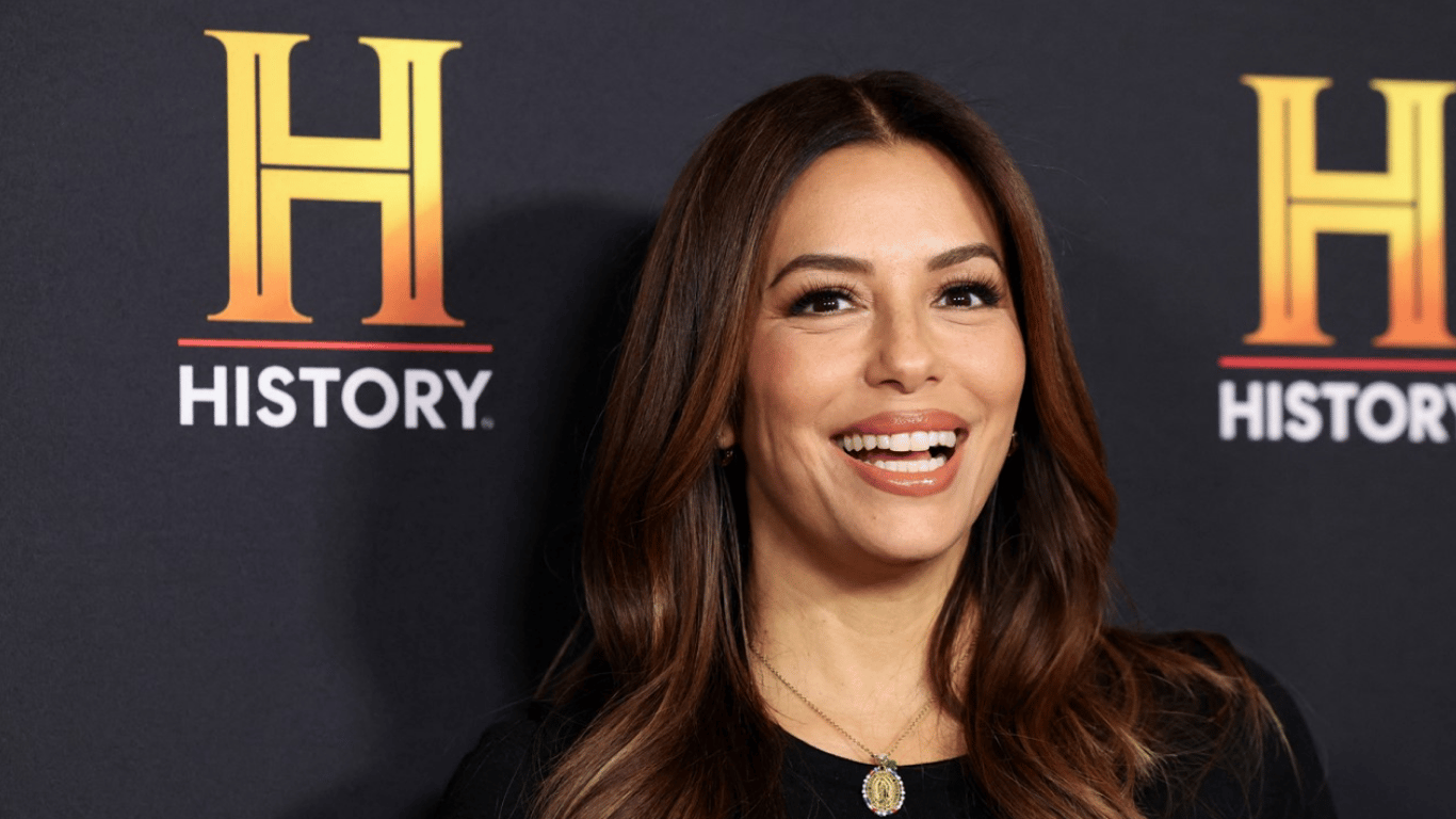 Лонгория надела длинное ослепительно-серебристое платье. Корсет платья был украшен узорами и пайетками. Она дополнила образ серебряным ожерельем, массивным браслетом и несколькими кольцами в тон.