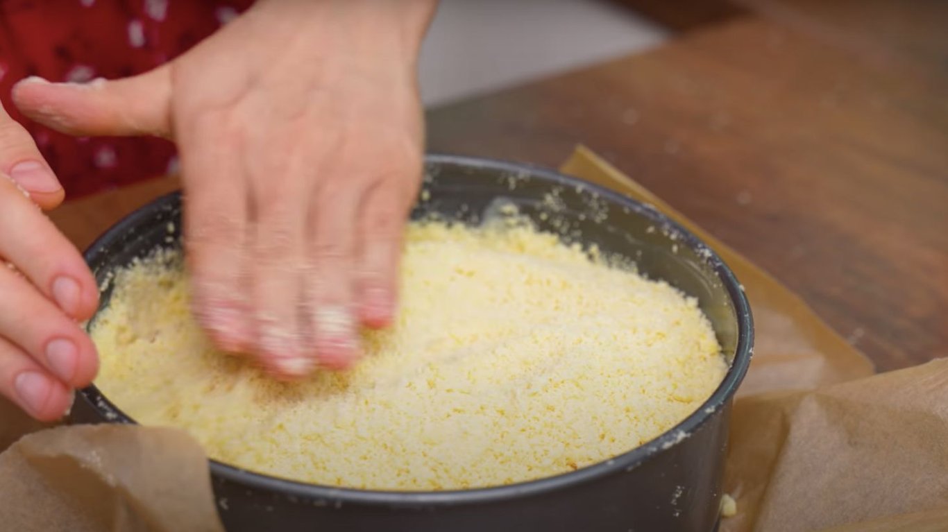 Тесто в форме для выпекания. Фото: YouTube @AlinaFooDee