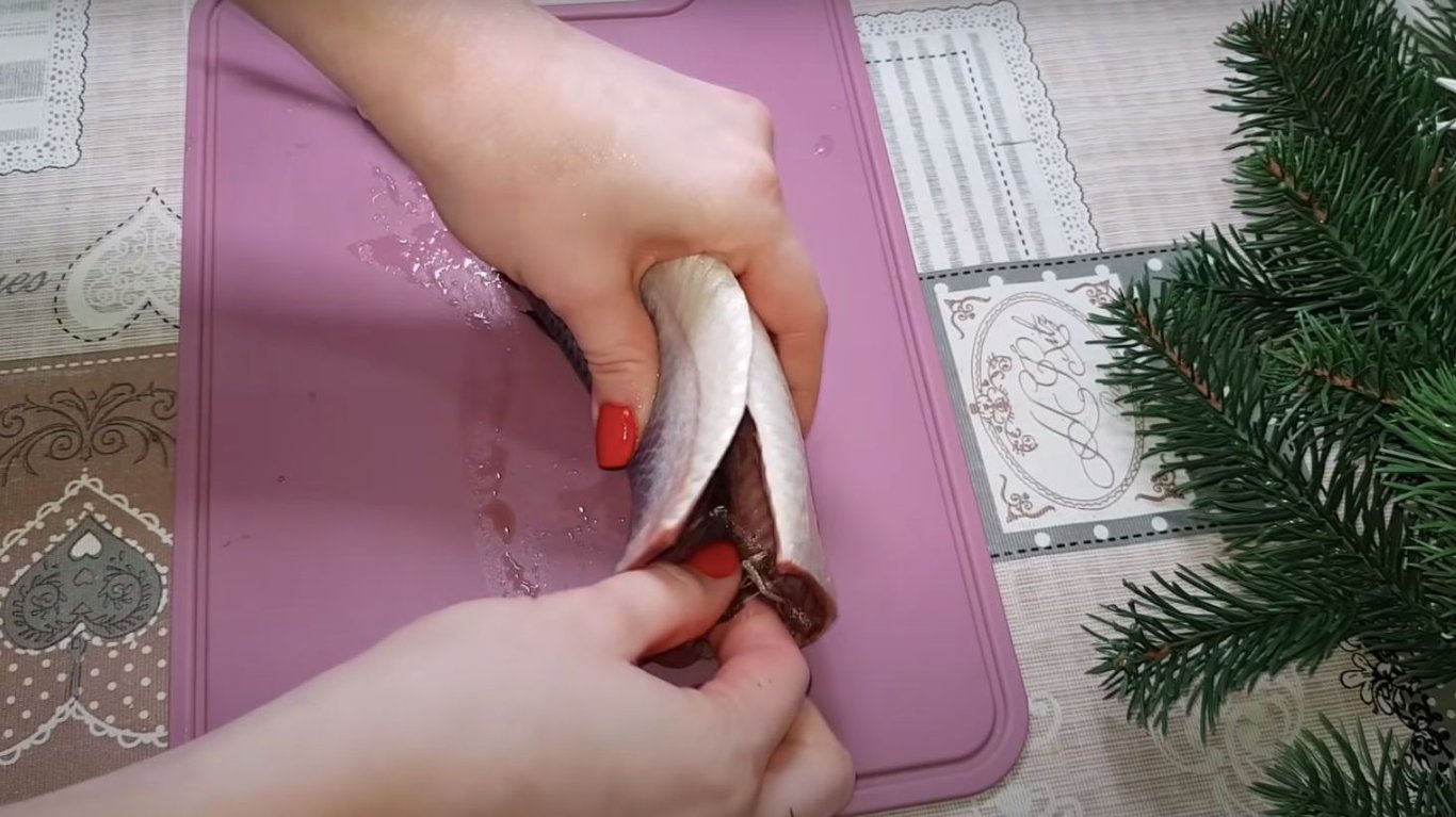 Этот способ очистки селедки действительно самый быстрый и удобный. Перепробовав множество вариантов, все равно будете каждый раз убеждаться, что этот способ самый удобный.