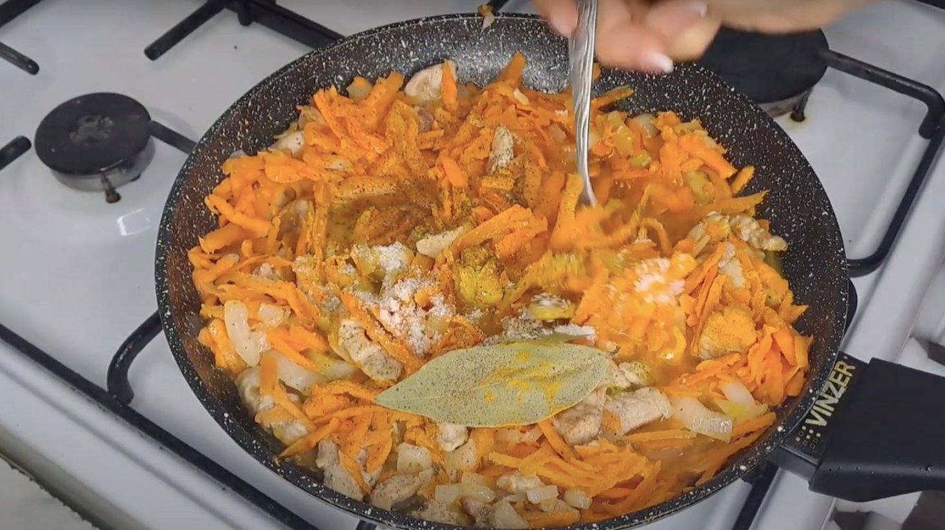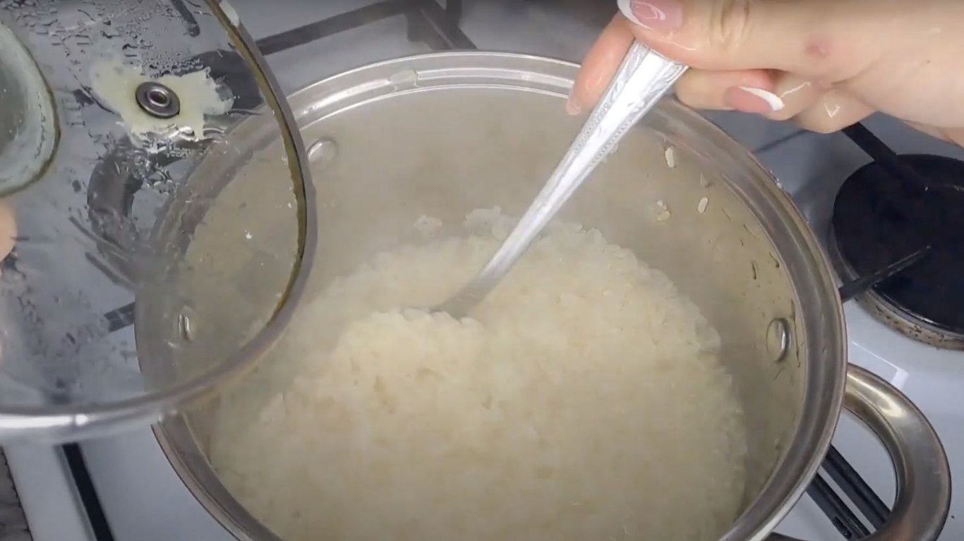 Добавление риса. Фото: YouTube @user-oq3ty5sq7y