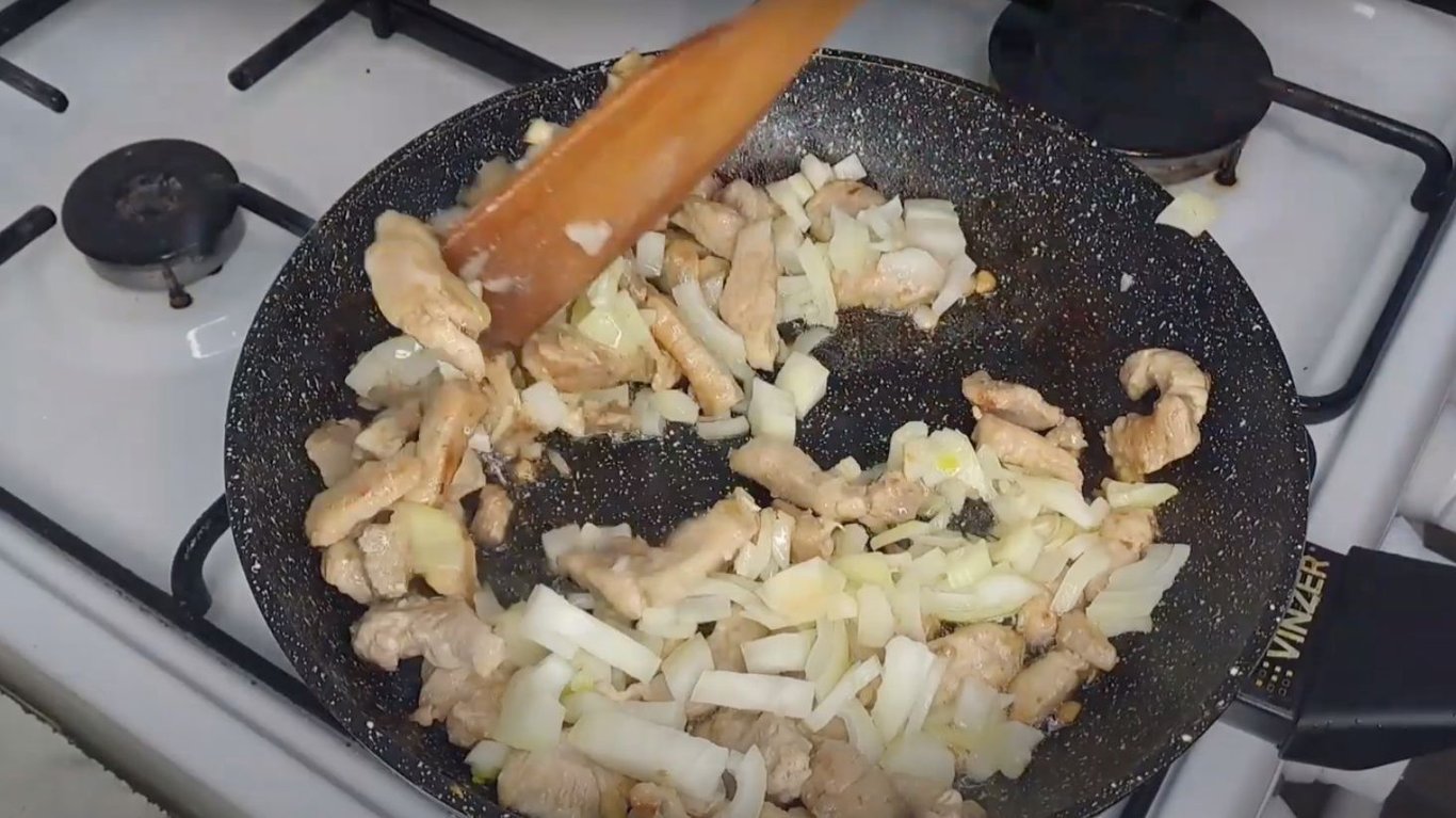 Свинина и лук. Фото: YouTube @user-oq3ty5sq7y