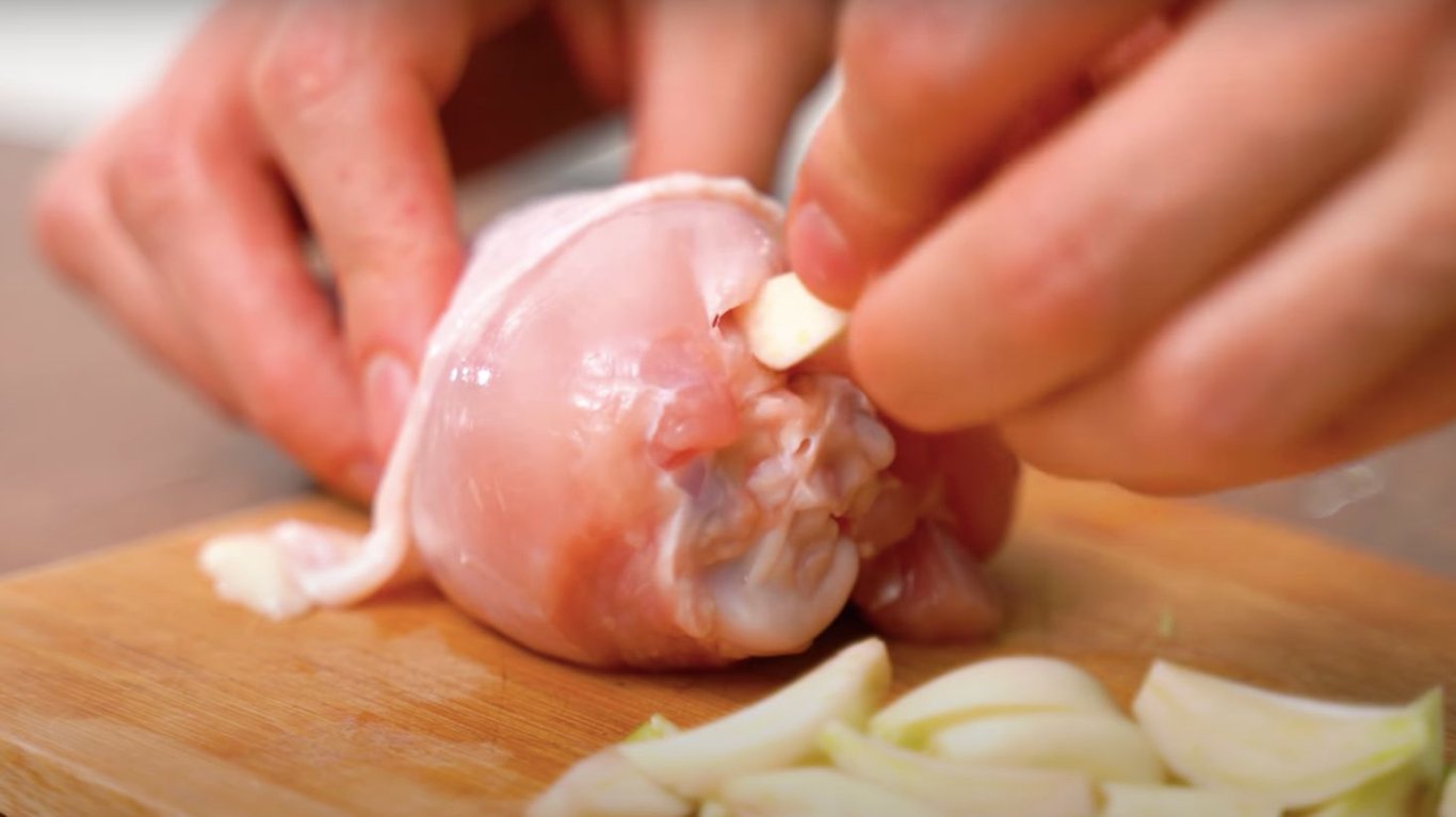 Куриная ножка и чеснок. Фото: YouTube @AlinaFooDee