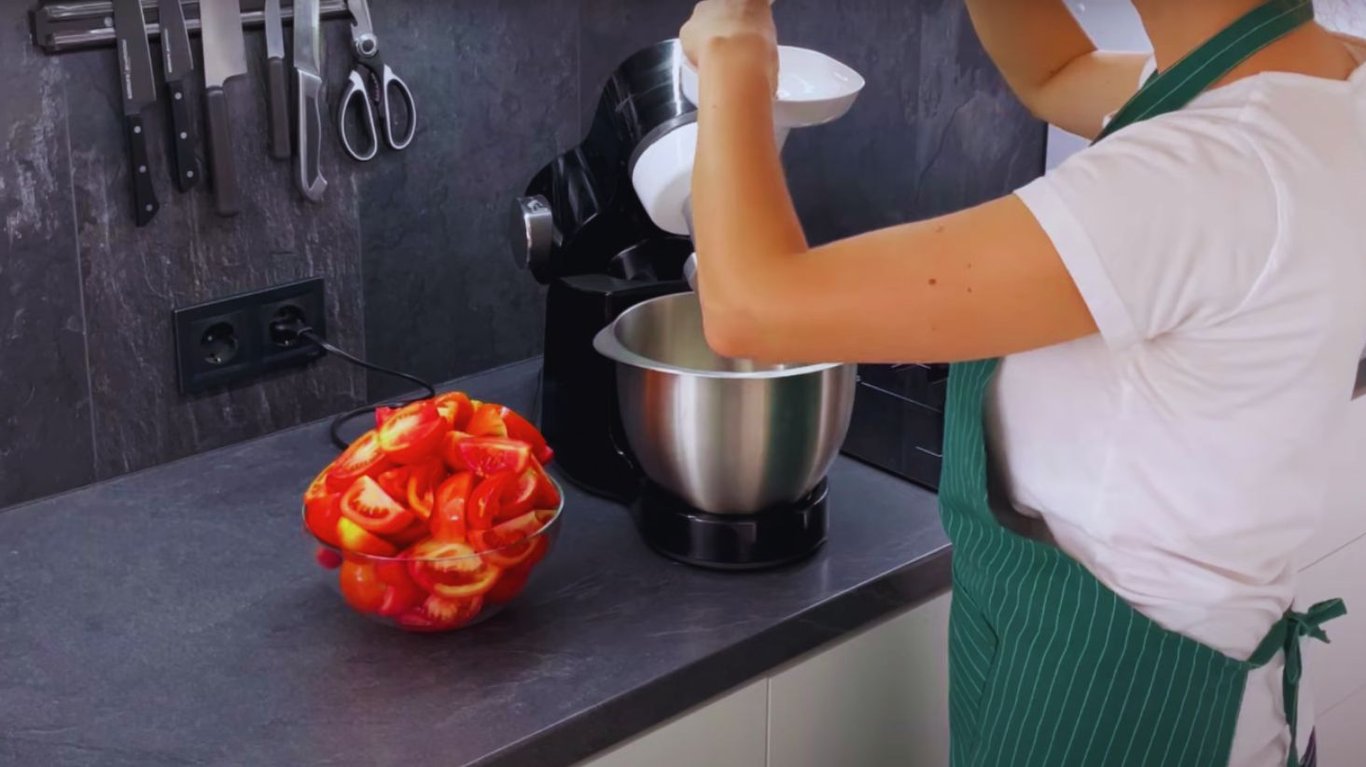 Измельчение помидоров. Фото: YouTube @icandoit411