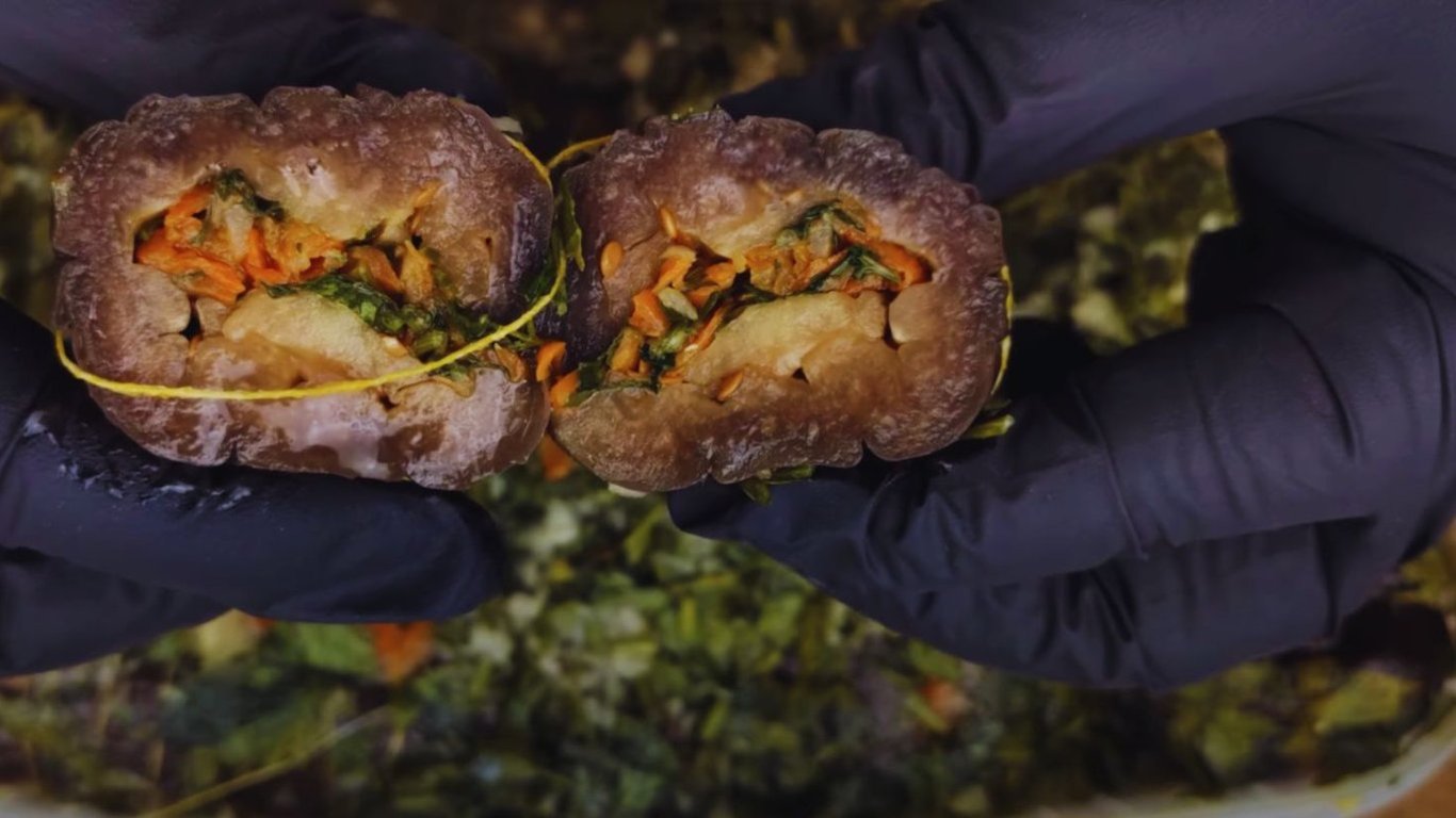 Карманы в баклажанах. Фото: YouTube Смаколик.юа Мария Михальченко.
