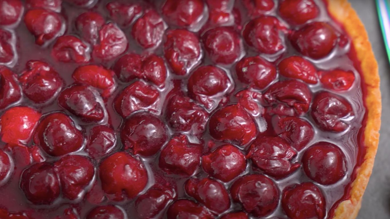 Сочетание вкусов и текстур в этом пироге очень удачное. Рассыпчатое песочное тесто, нежный заварной крем с ванильным ароматом и упругое вишневое желе. Обязательно попробуйте приготовить такую выпечку.