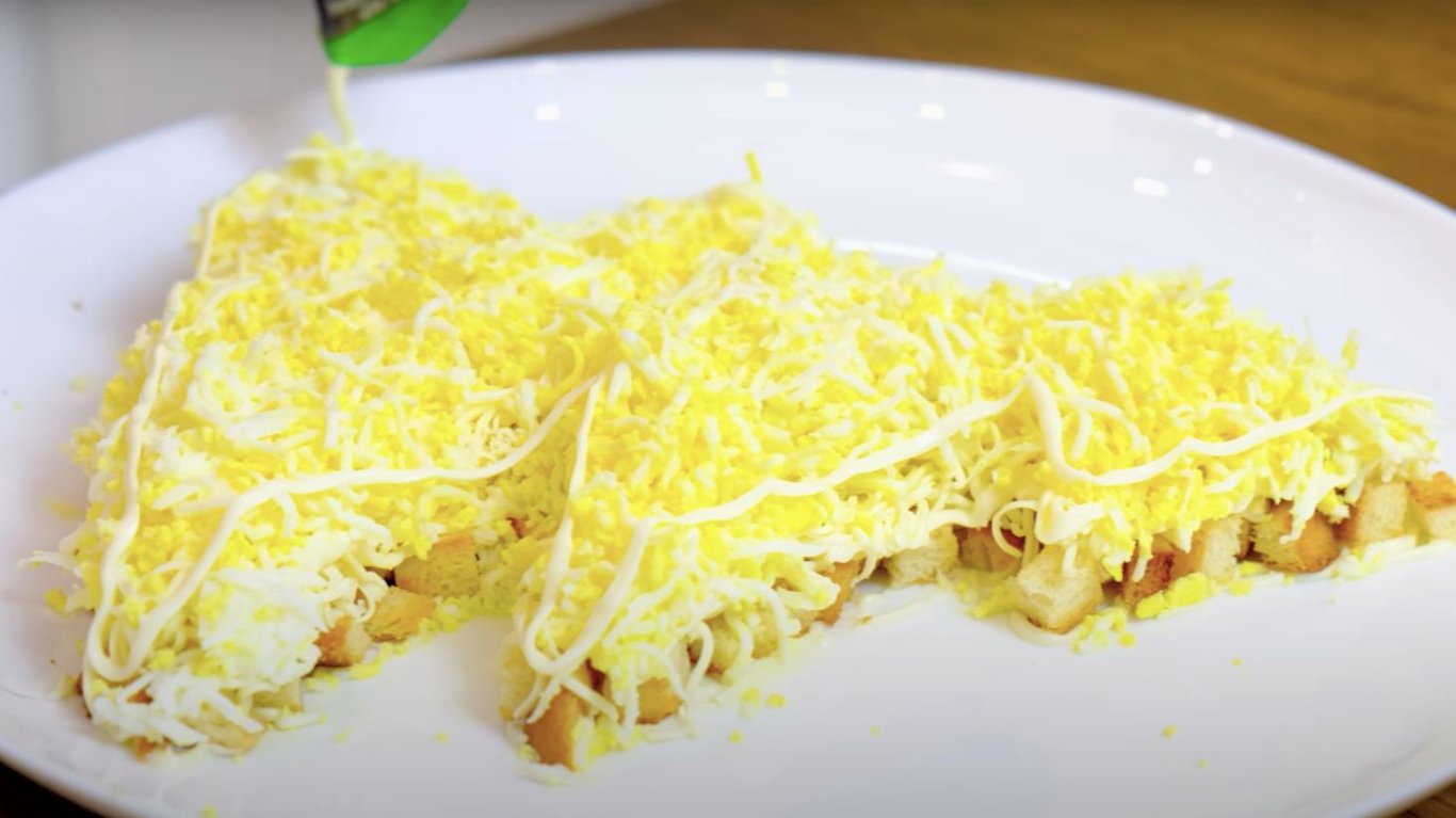 Основа салата из сухариков. Фото: YouTube @AlinaFooDee