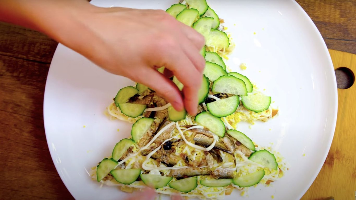 Огурцы и шпроты. Фото: YouTube @AlinaFooDee