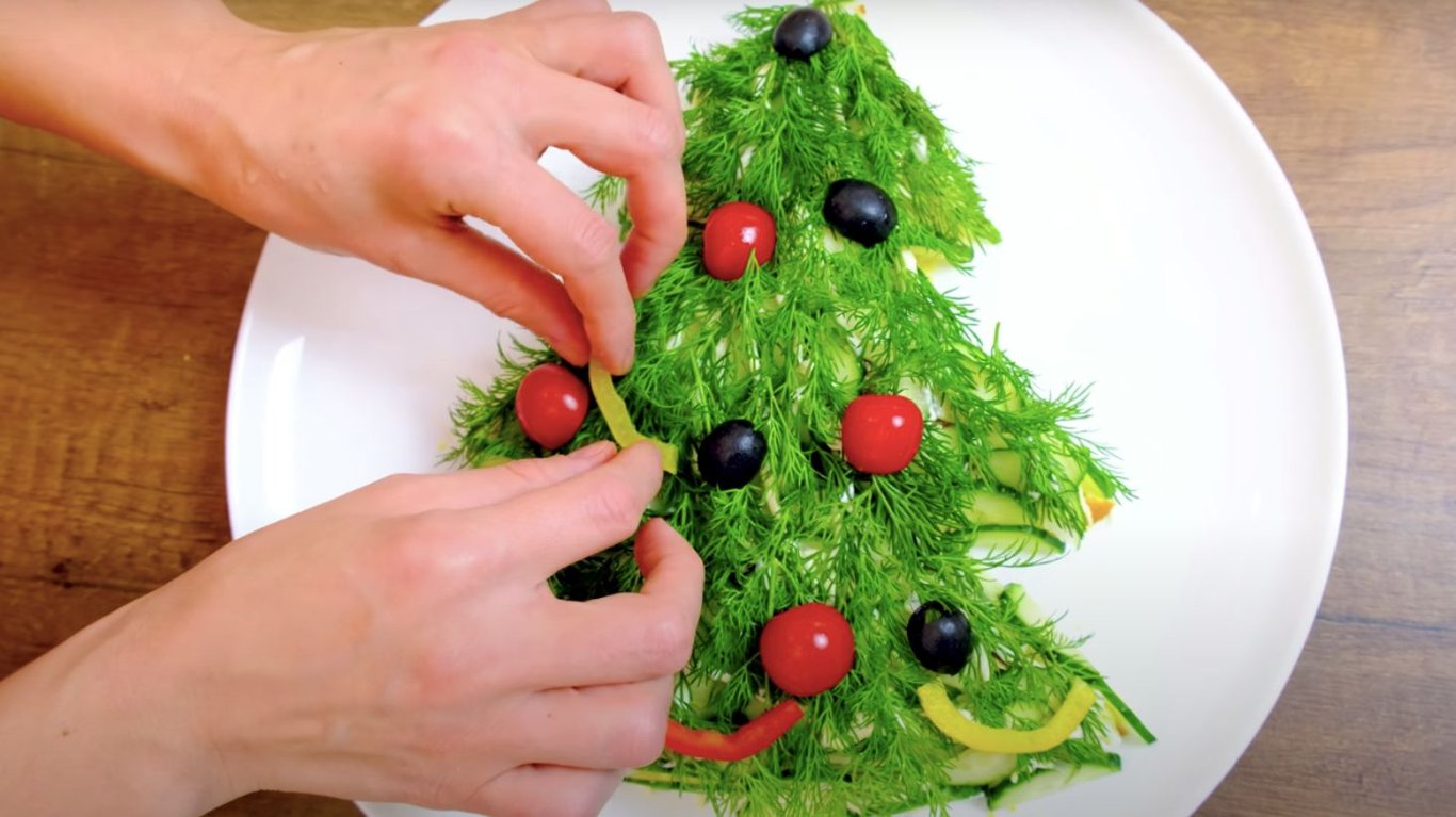 Украшение салата. Фото: YouTube @AlinaFooDee