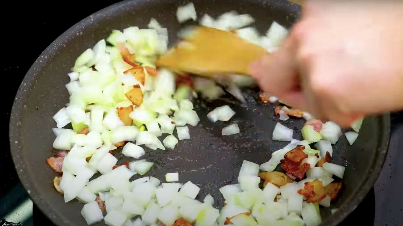 Лук и бекон. Фото: YouTube @AlinaFooDee