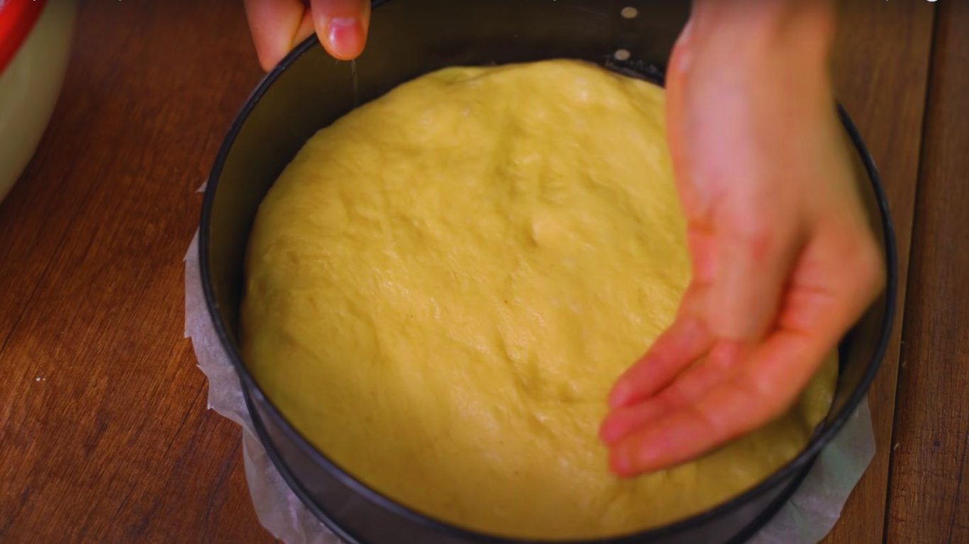 Тесто в форме для выпекания. Фото: YouTube @AlinaFooDee