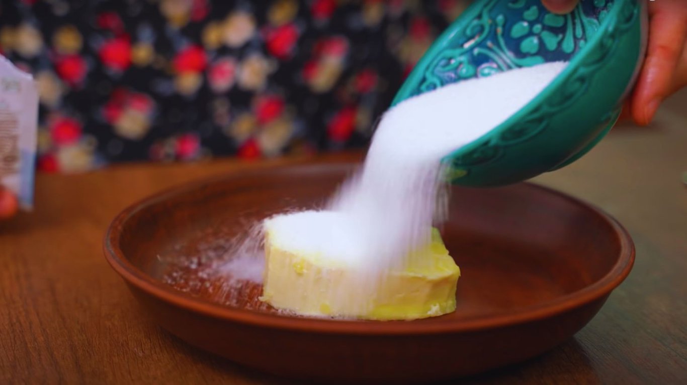 Сливочное масло и сахар. Фото: YouTube @AlinaFooDee