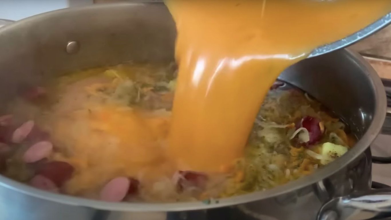 Лук, морковь и колбаски. Фото: YouTube @NadiaKostivRecipes
