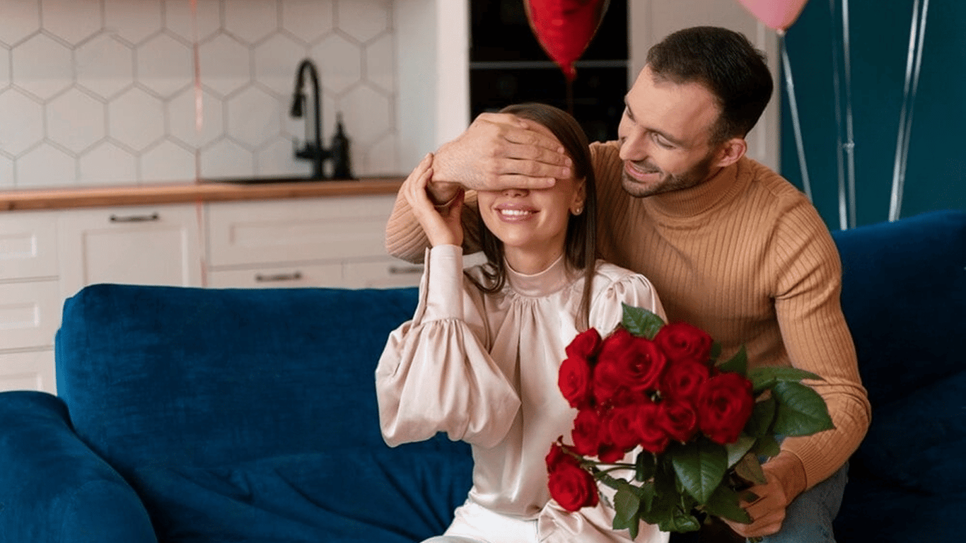Хлопець, який дарує своїй дівчині букет червоних троянд. Фото: Freepik