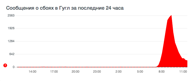 Так, на роботу пошукової системи почали скаржитися о 8:45 за Києвом. Найбільше їх сервіс отримав з 9 ранку - 2 570. Про проблеми з додатком повідомляють користувачі з США, Великобританії, Іспанії, Італії, Німеччини, Австралії, а також України.