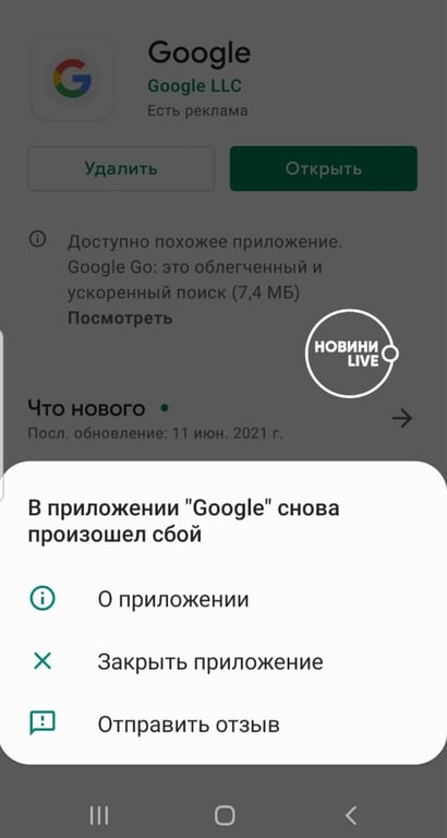 У роботі пошукової системи Google 22 червня стався глобальний збій. Користувачі почали скаржитися на проблеми з додатком на смартфонах Android.