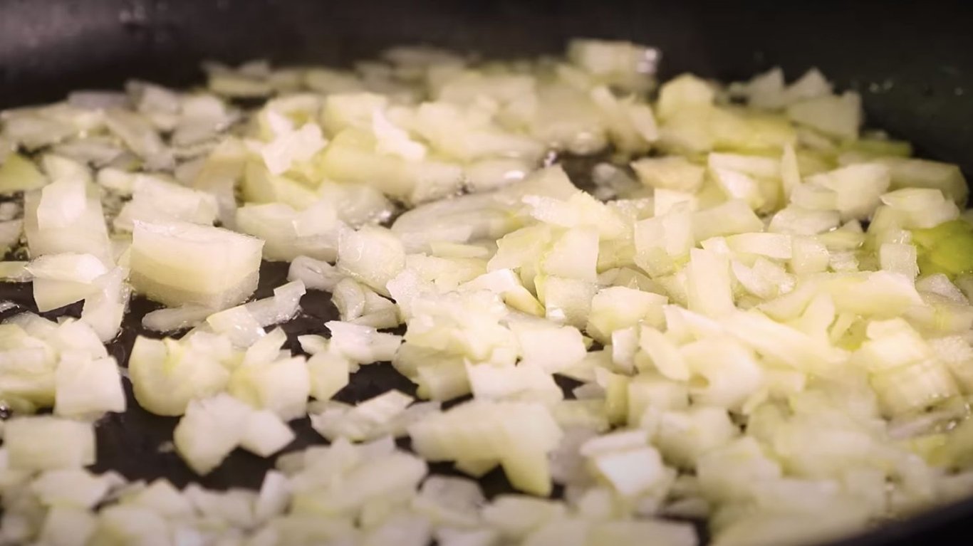 Тепер приготуємо начинку. Для цього потрібно обсмажити цибулю.