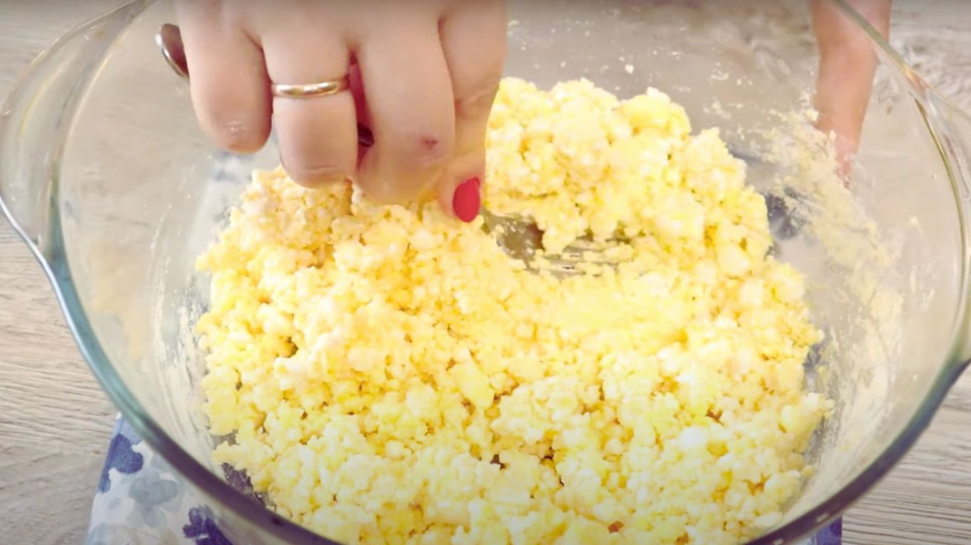 Кисломолочний сир та яйце. Фото: YouTube @prosti_retsepty