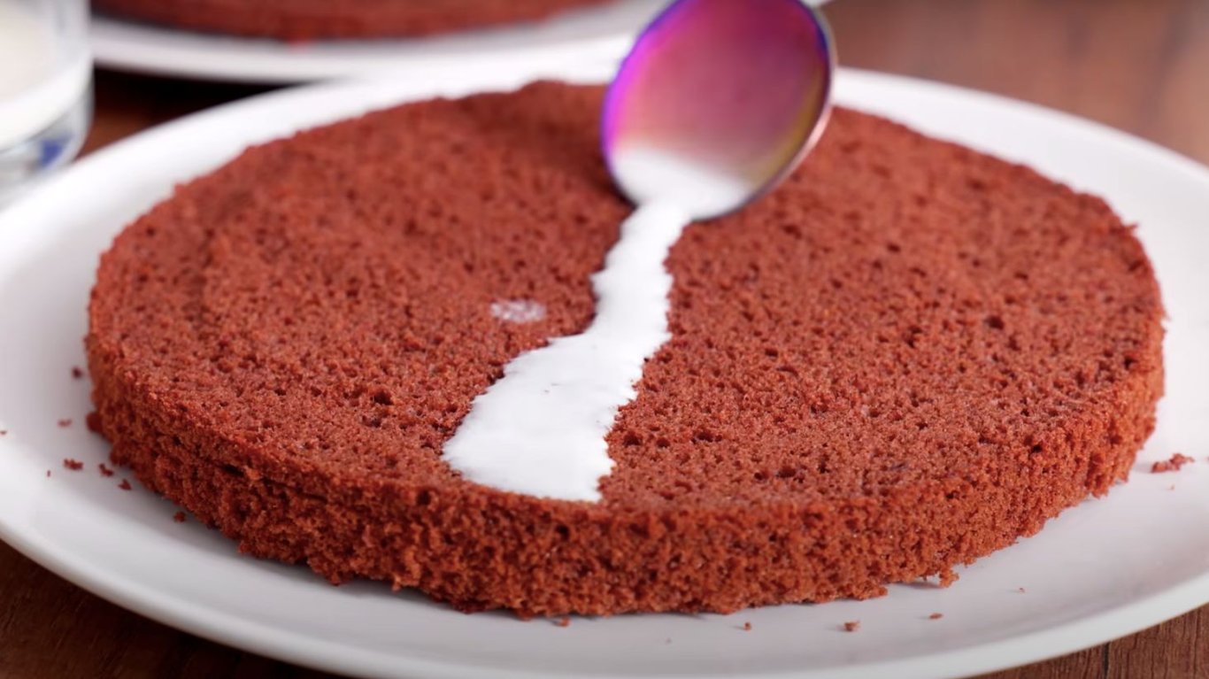Просочення коржа. Фото: YouTube @AlinaFooDee