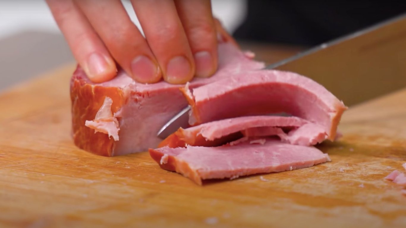 Нарізана шинка. Фото: YouTube @AlinaFooDee