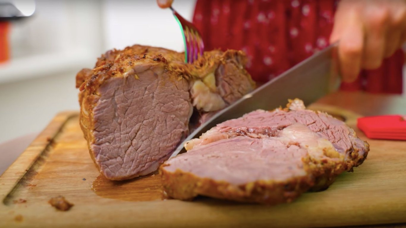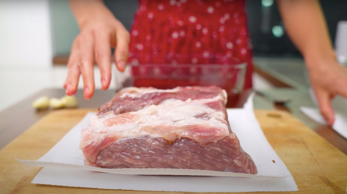 Шматок свинини. Фото: YouTube @AlinaFooDee